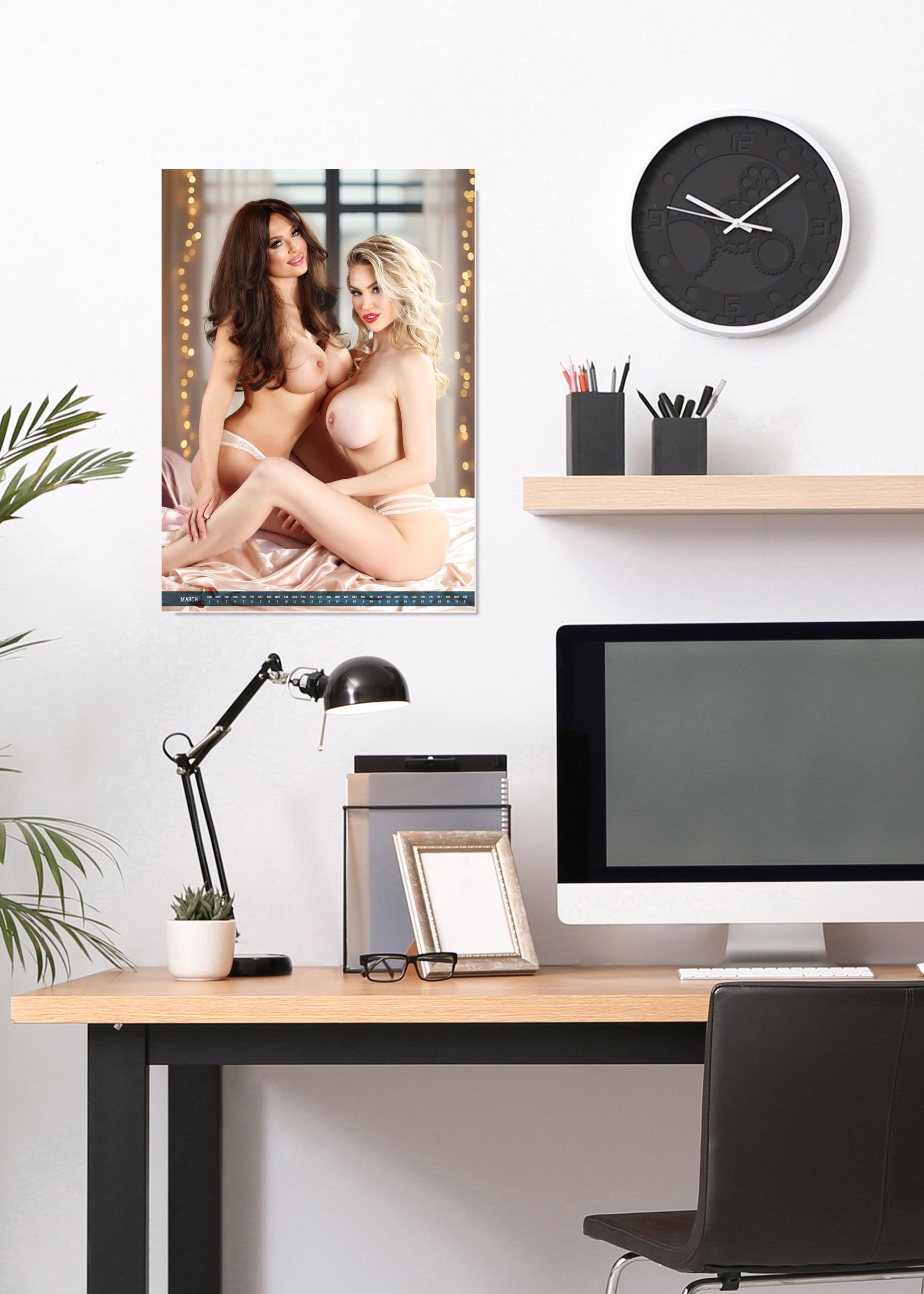 2 months of super erotic images featuring sexy blondes and brunette glamour models. This 2026 calendar features sensual and sexy lesbian images for guys or girls to enjoy. Includes topless images and large 30cm x 42 cm page size